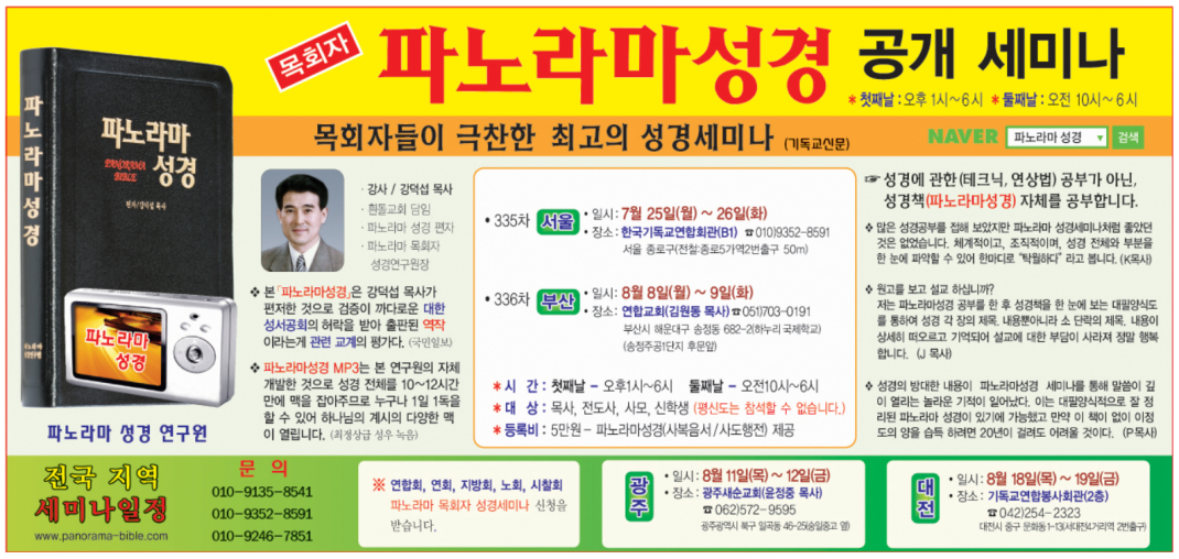 공개세미나 전국순회 7월 파노라마 세미나 일정